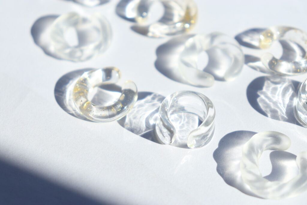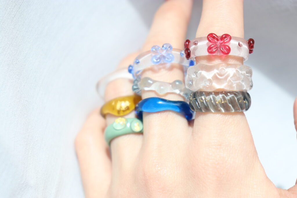透明感のあるガラス素材は年齢や性別関係なく全ての人に馴染み、少しだけ個性もプラスしてくれます✨イヤーカフや様々なサイズのリングをご用意いたします💍これから訪れる春や初夏の晴れた日に透きとおるガラスのアクセサリーをコーディネートに取り入れてみてはいかがですか?