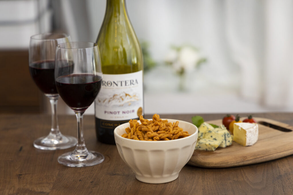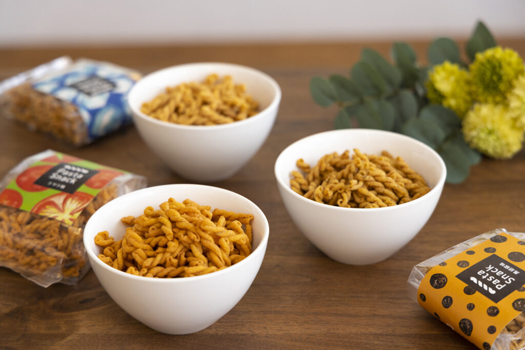 パスタスナックはデュラム・セモリナ小麦粉100%の本格パスタを使用し、独自の製法で製造。