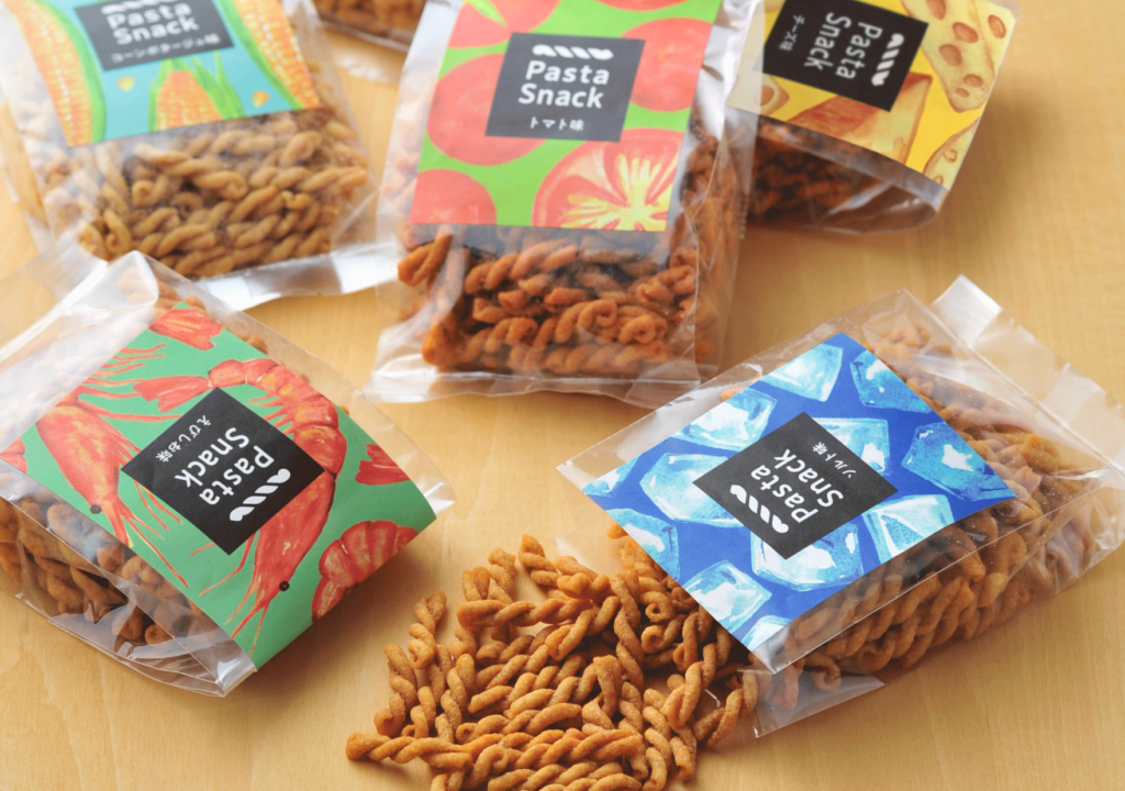 そんな三州製菓がパスタスナックを作り始めたきっかけは若手社員の発案によるもので、前例がない中、長年培った揚げ煎餅の製法技術を活かし 原材料・製造機械を新たに設計、デザイン、パッケージにもこだわり抜き5年近く経った頃にはヒット商品に生まれ変わっていました。