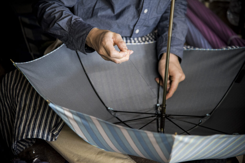 全ての工程を自社で行っているため万が一傘が壊れてしまっても職人さんによるお直しを行うことができるため安心してお使いいただけます。空模様も気分も暗くなってしまう梅雨の季節だからこそ”人生を添い遂げたくなる傘” で自身の心を晴れにしてみてはいかがでしょうか。
