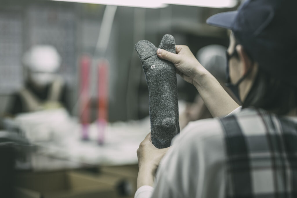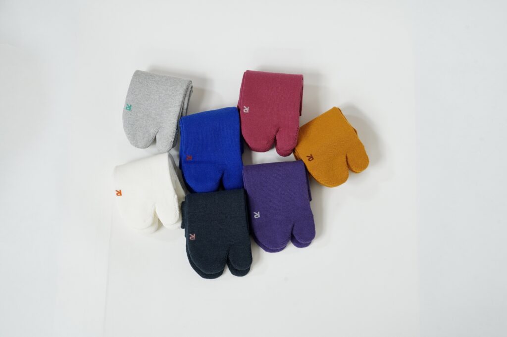 日本に古くからある「足袋」の形を取り入れ、指先を立体的に編み立てる製法で足の形状にフィットし、靴を履いた際にも足へのストレスを軽減させ、快適な履き心地を実現。立ち上がったり、歩いたり、走ったり、踏ん張ったり…🚶♀️そんな日々の生活をサポート。